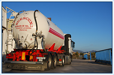 En el almacén de sal SUESCUN, la satisfacción de nuestros clientes es nuestro principal objetivo. Por ello, para que la entrega de los pedidos se realice en el menor tiempo posible y con la máxima calidad, contamos con nuestros propios vehículos de transporte. Nuestra flota, con punto de origen en Puente la Reina (Navarra), se compone de cuatro camiones y una furgoneta. Además, disponemos de dos cisternas para la distribución de sal seca a granel y otras dos para la salmuera.